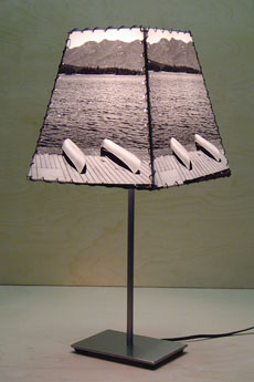 panels of each lampshade are original fine art quality black and white photographic prints allowing the brilliance of the images to come through. the images are printed on a specially developed photo vellum, which prevents fading by the illumination and the sunlight. the slim and simple bases are made from stainless steel and together with the shades, create a unique, beautiful and elegant lamp.